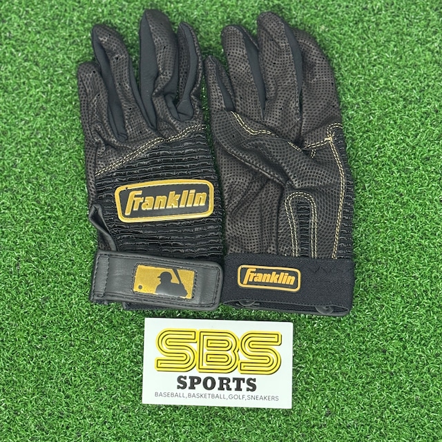 フランクリン 野球 オーダー バッティング 手袋 Pro Classic BATTING GLOVE ブラック フランクリンのバッティンググローブの伝統を受け継ぐ2020年プロクラシックグローブが、今シーズン、打席で力強いスイングを繰り出すあなたをサポートするために帰ってきました。このグローブは、継ぎ目のないピターズ®デジタルシープスキンレザーの掌部を採用し、さらに優れた可動性と快適性を実現する一体型プログレードスパンデックス素材の甲部を備えています。 ピターズデジタルシープスキンレザーは、あらゆる天候に対応するグリップ力を発揮するよう、戦略的に刻まれた溝パターンを採用しています。 手のひらの動きを予測し、バットのグリップに完璧にフィットします。 一体型プログレードスパンデックス素材の甲部は、動きに追従する抜群の快適なフィット感を提供します。 継ぎ目のない掌部デザインにより、耐久性とグローブの寿命が向上します。 【商品の説明】 ブランド、メーカー:フランクリン サイズ:子供用L(日本のSサイズ) S(日本のMサイズ) M(日本のLサイズ) L(日本のXLサイズ) XL(日本の2XLサイズ) 多くのMLB選手が愛用するフランクリンのバッティング手袋です。 こちらはアメリカからの輸入モデルです。 フランクリン社からの正規品です。 【商品の状態】 使用状況:新品・未使用 ★アメリカのロサンゼルス郊外より発送になりますので入金後、お客様の手元に届くまで1週間ほどかかります。発送はヤマト国際宅急便にて発送いたします。 ★送料・関税は全て当店で負担いたしますのでお客様は落札価格のみの支払いになります。 ★運送途中による、箱の傷、凹み等におきましては責任を負いかねますので、神経質な方は入札しないようお願いします。 不明点はご質問ください。