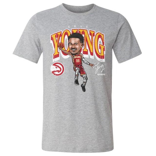 【NBA】 トレイ ヤング アトランタ ホークス バスケットボール Cartoon Tシャツ グレー A-C-BNLCHGR-XX-0775-001-01-6SH
