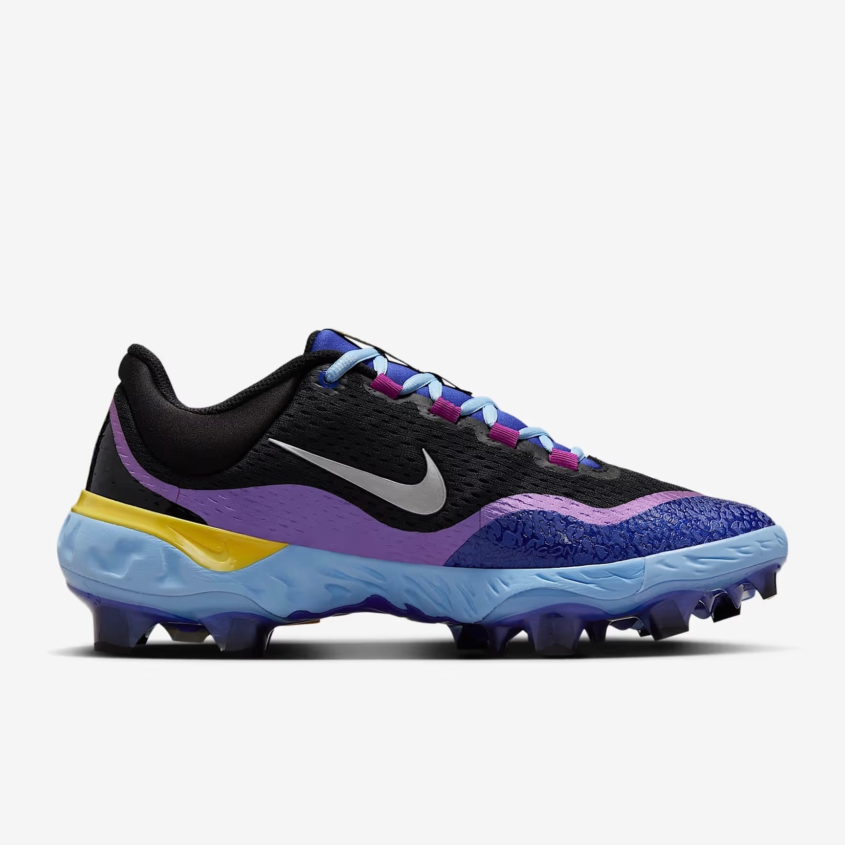 アッパーのメッシュ ウィンドウは、バスケットボール界の象徴的な Nike Huarache を彷彿とさせ、野球の先行モデルと比較して軽量化に貢献しています。