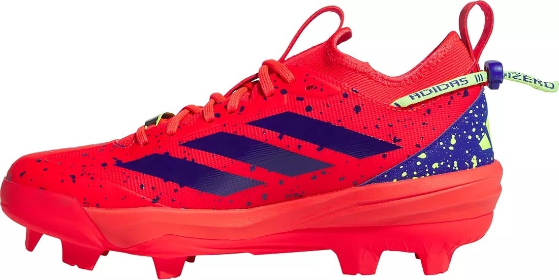 フィールドで最も表情豊かなアクセサリーからインスピレーションを得たAdizero Impact 2.0 Shadesは、鮮やかなカラー、ペイントスプラッターのアクセント、そして虹色のトリムが特徴です。