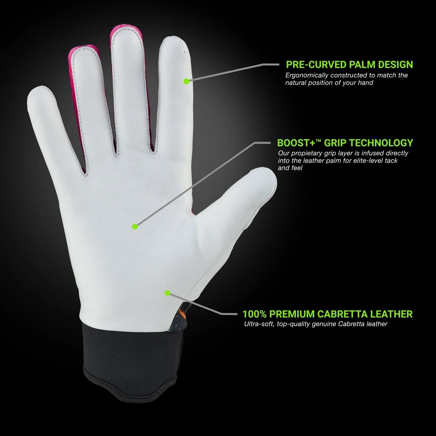 手首から指先まで、BOOST+レザーグリップテクノロジーを採用したGrip Boostバッティンググローブは、業界最高峰のフィット感、精密に設計されたグリップ、そして第二の皮膚のような感触を提供します。ぜひお試しください。あなたの手とスイングにきっとご満足いただけるはずです。