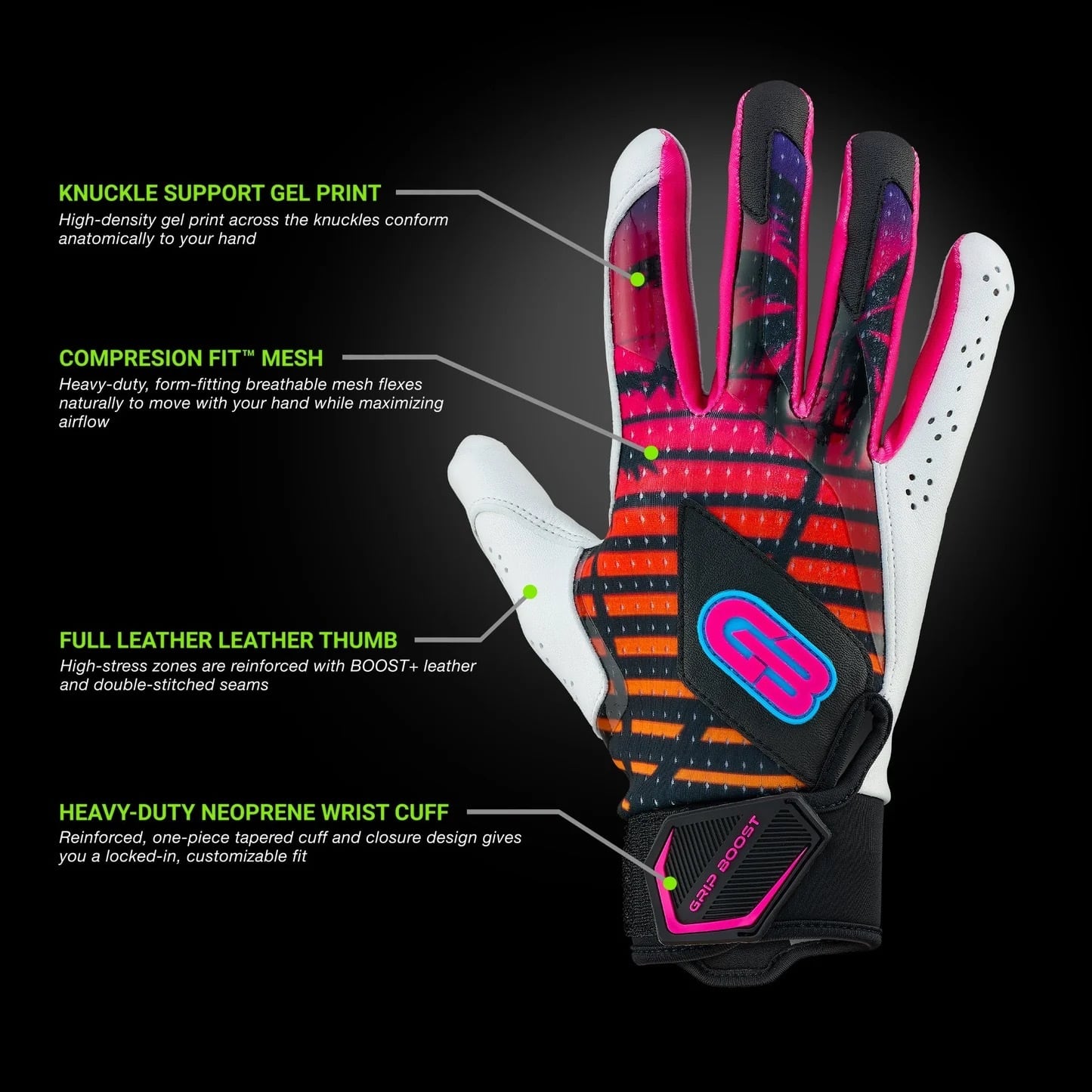 グリップブースト Grip Boost 野球 バッティング グローブ Miami Nights Loaded Baseball Batting Gloves with Boost Plus Leather 両手組 手袋 バッテ