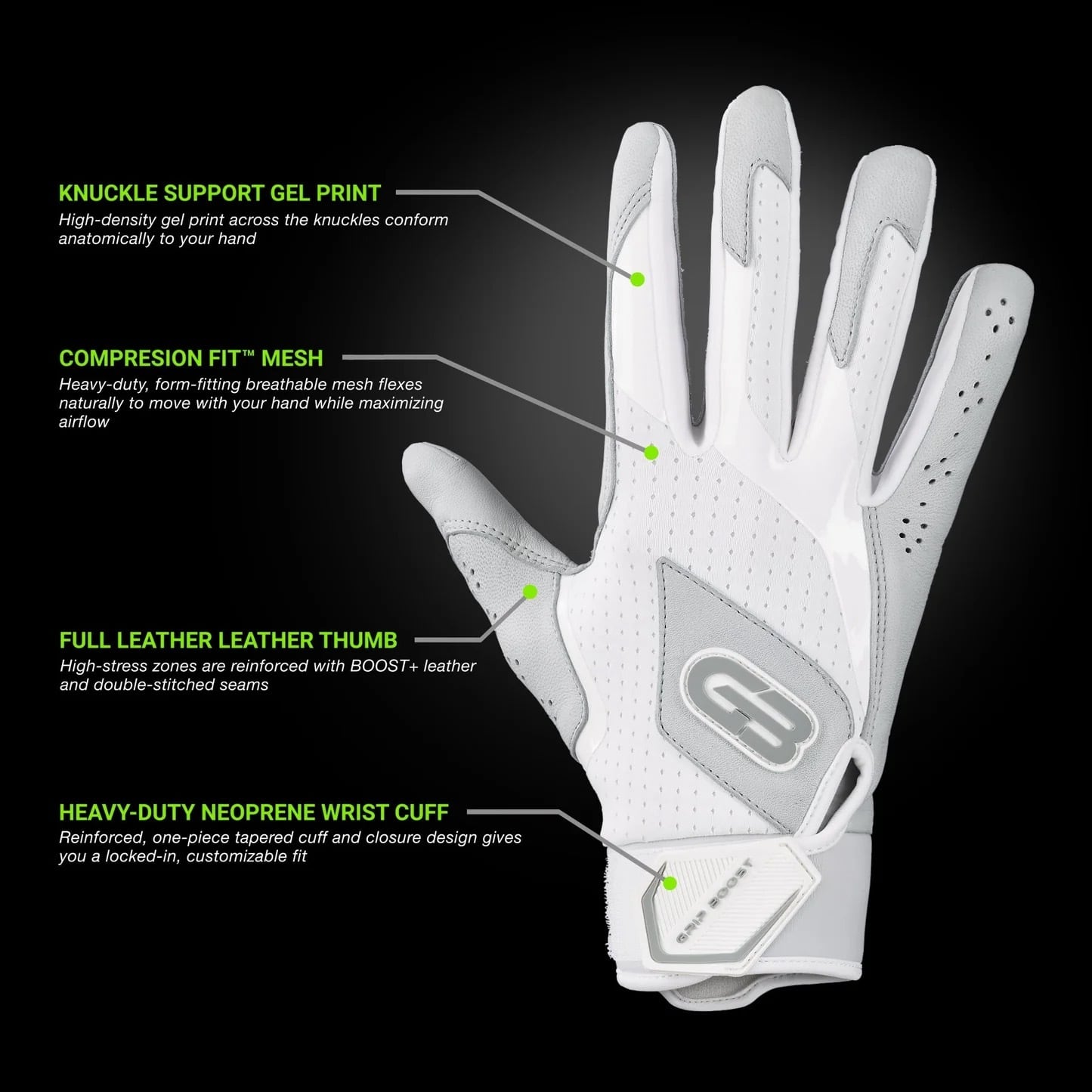 商品名:White Loaded Baseball Batting Gloves with Boost Plus Leather