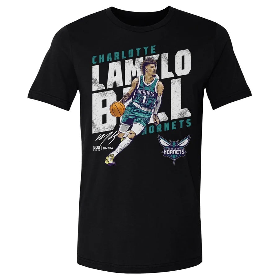 【NBA】 ラメロ ボール シャーロット ホーネッツ バスケットボール Slant Tシャツ ブラック A-C-BNLCBLK-XX-0777-001-05-6SH