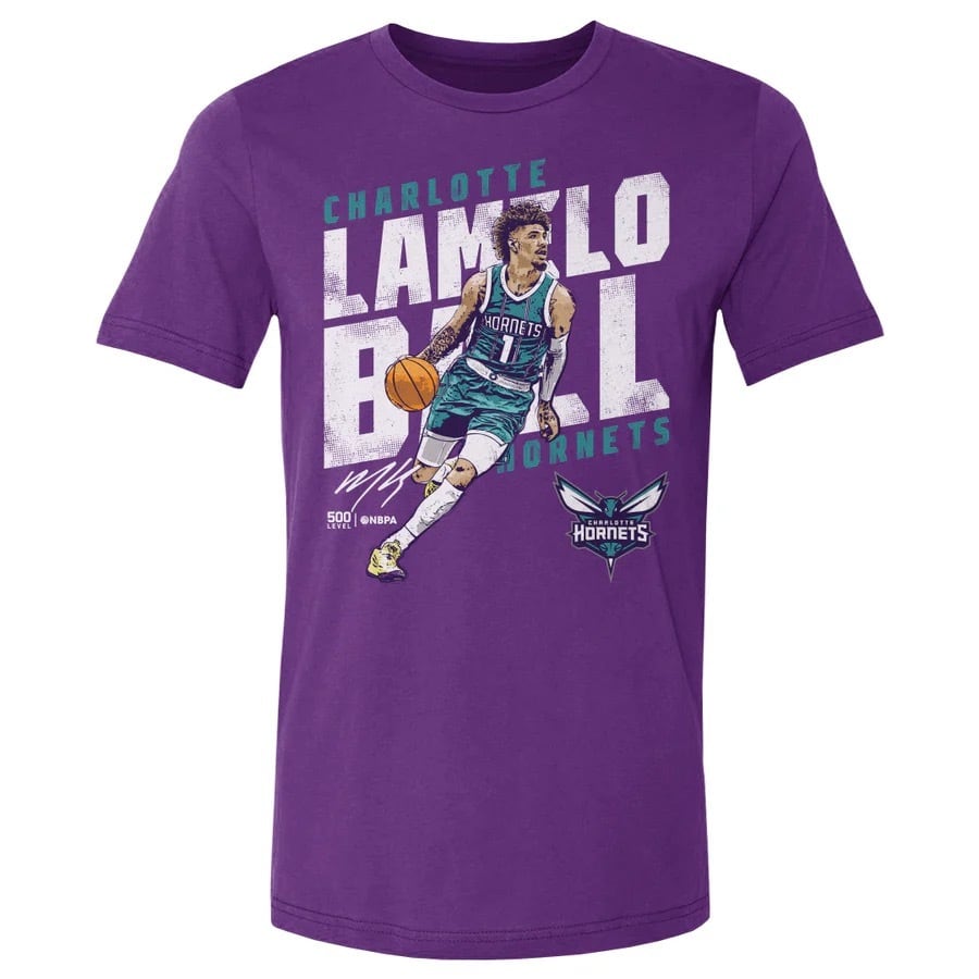 【NBA】 ラメロ ボール シャーロット ホーネッツ バスケットボール Slant Tシャツ パープル A-C-BNLCPRP-XX-0777-001-05-6SH
