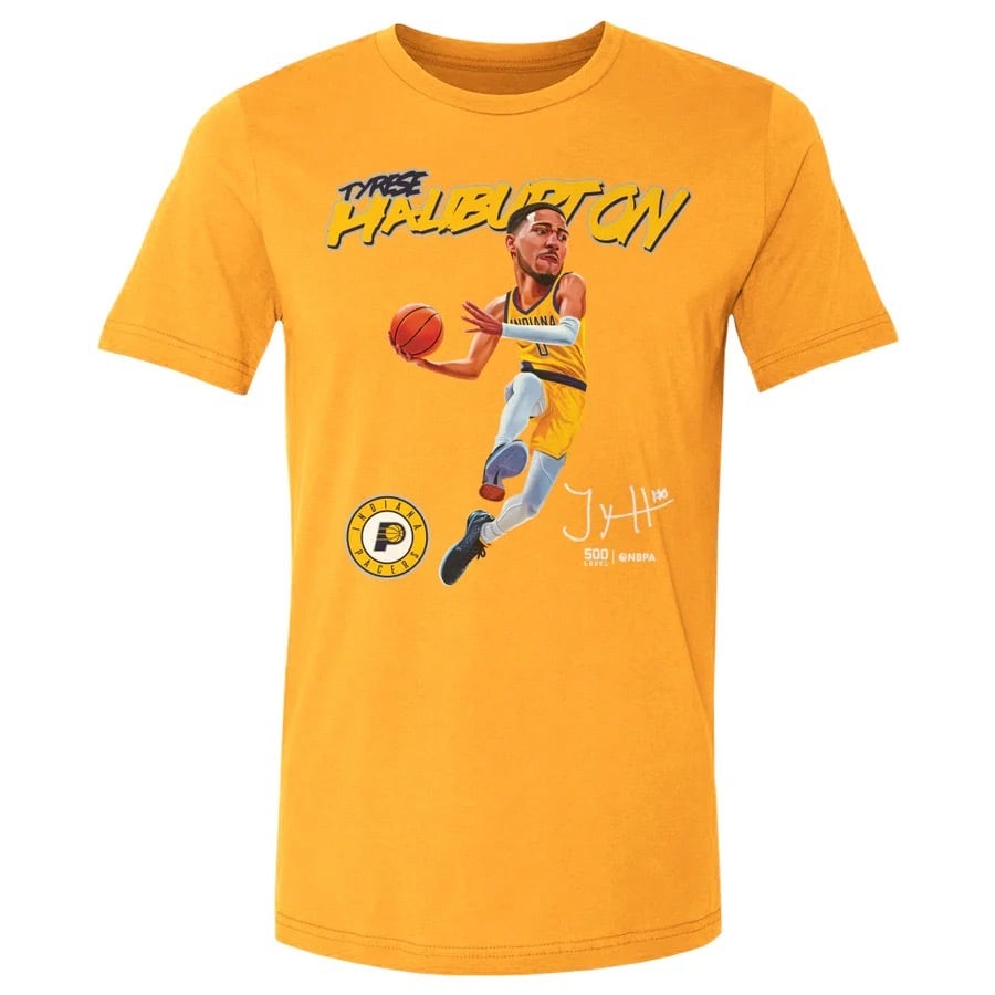 【NBA】 タイリース ハリバートン インディアナ ペイサーズ バスケットボール Caricature Tシャツ ゴールド A-C-BNLCGLD-XX-0747-002-10-ZSH