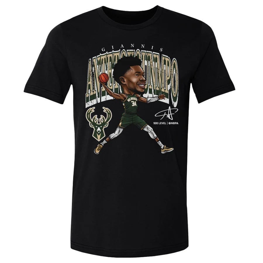 【NBA】 ヤニス アデトクンボ ミルウォーキー バックス バスケットボール Cartoon Tシャツ ブラック A-C-BNLCBLK-XX-0787-002-01-6SH