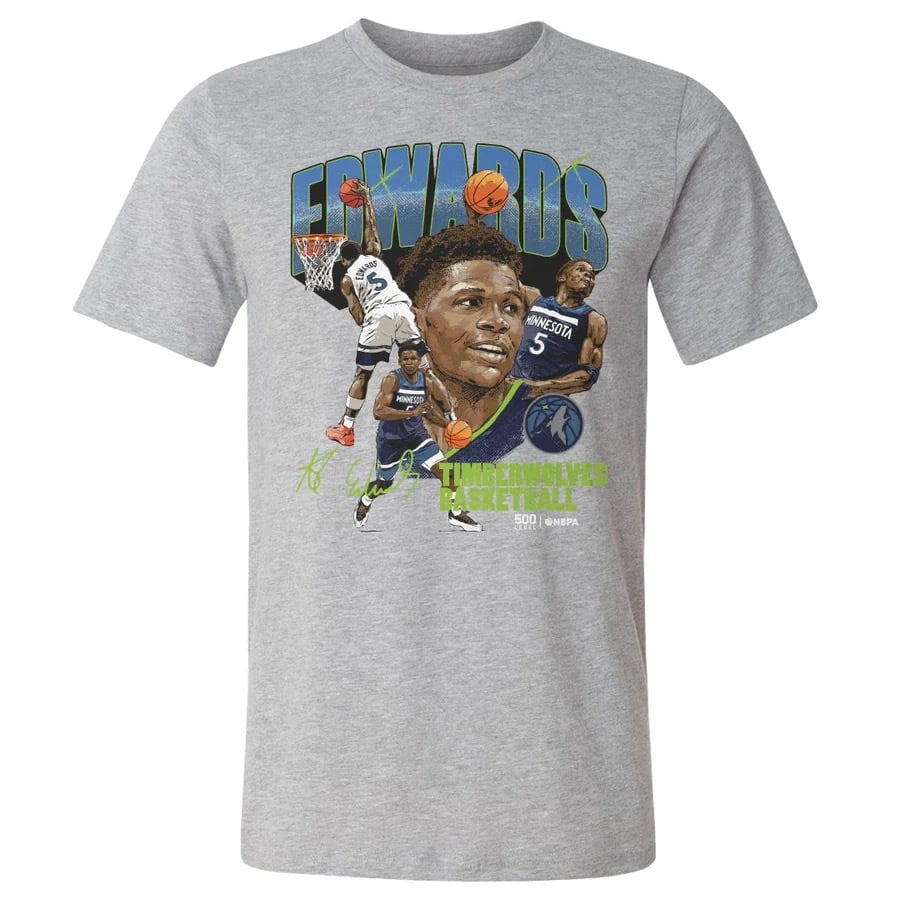 【NBA】 アンソニー エドワーズ ミネソタ ティンバーウルブズ バスケットボール Collage Tシャツ グレー A-C-BNLCHGR-XX-0788-001-10-6SH
