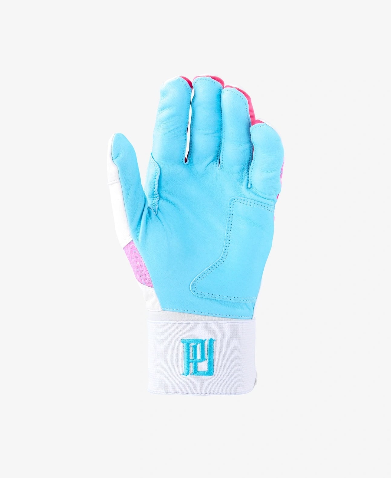 X-SRZポッツタウン カーバイン バッティンググローブ(ストラップ付き)を装着してバッターボックスに立ち、ソーシャルメディアで人気のトラベルボールチームのように、強烈な打球を放って長打を狙いましょう。バターのように滑らかなビクトリーブルーのカブレッタレザー製パーム、戦略的に配置されたレザー補強、そして柔軟なライクラ製マチインサートを備えたカーバインバッティンググローブで、スイングをレベルアップさせましょう。CS99TVデザインを採用したX-SRZ™ ポッツタウン スワール カーバイン バッティンググローブは、ピンクとビクトリーブルーのスワールデザインが特徴です。安定性を高めるネオプレン製カフと丈夫なコンプレッションリストストラップにはPUロゴがあしらわれており、SNSで話題になるようなプレーを生み出すことができます。