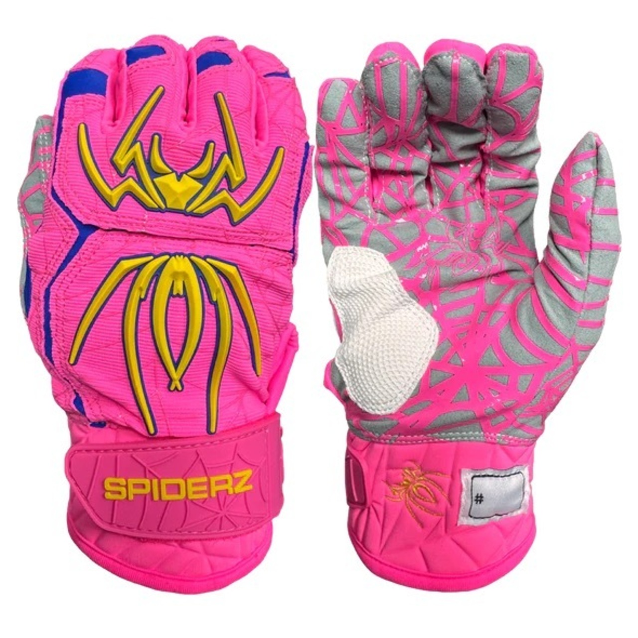 スパイダーズ Spiderz バッティング手袋 大人用 ハイブリッド Hybrid 両手用 野球 バッティンググローブ Pink/Royal Blue/Yellow