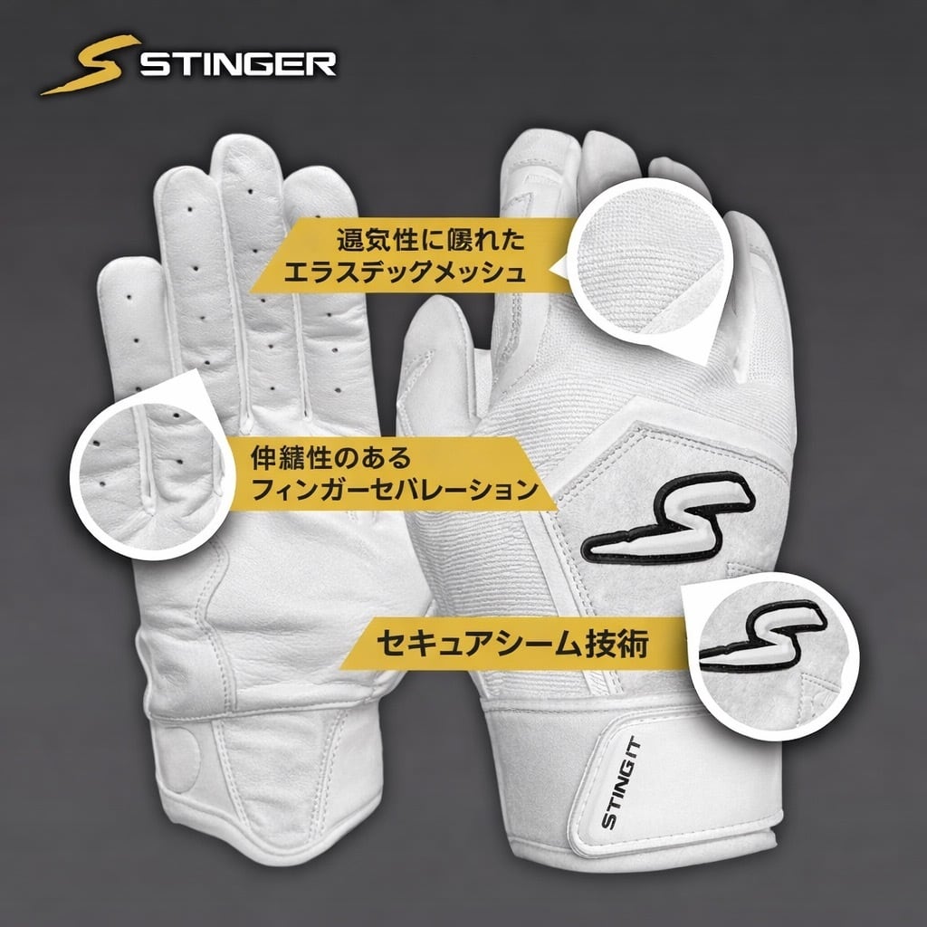 スティンガー Stinger 野球 バッティング グローブ Sting Squad Batting Gloves 両手組 手袋 バッテ Black Out
