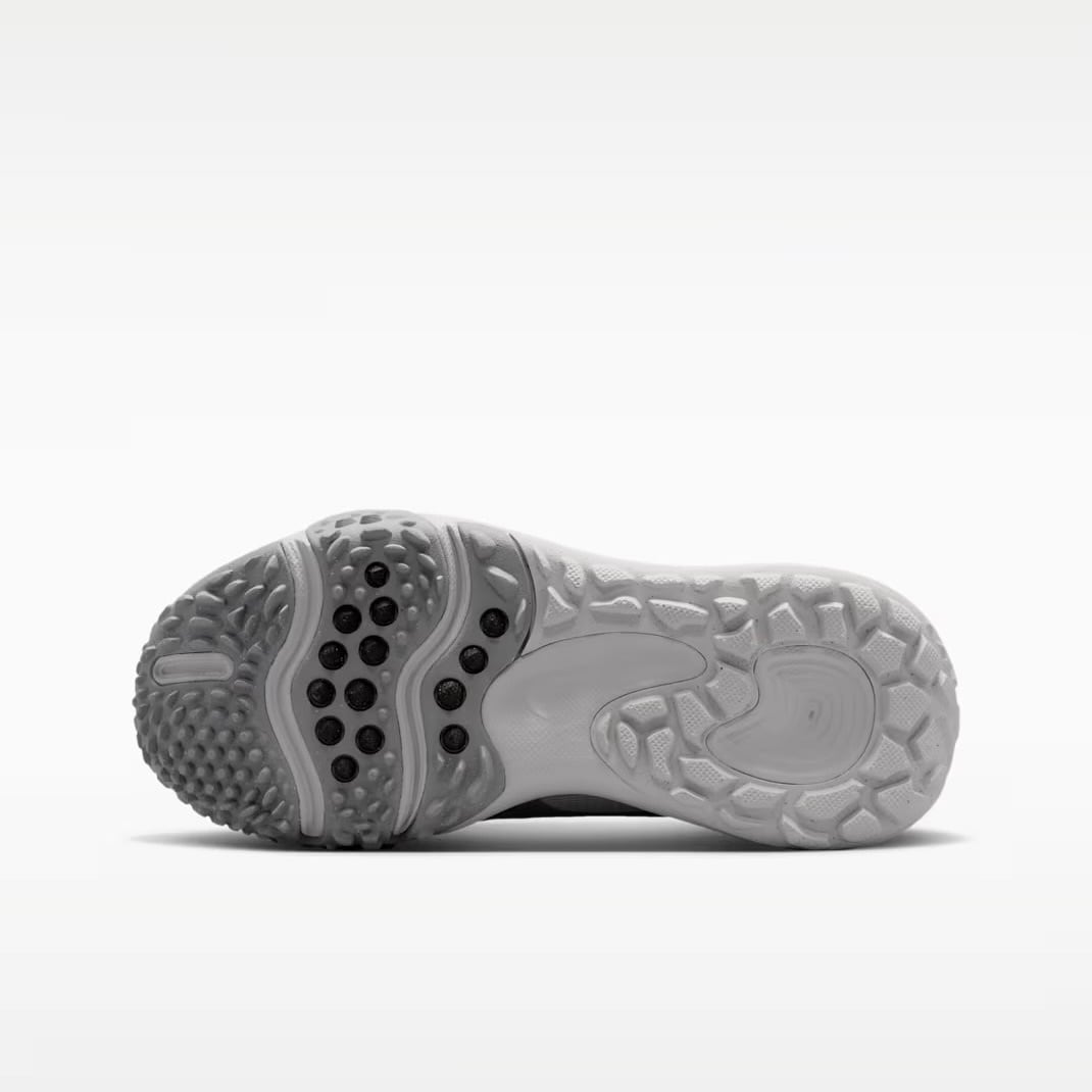 特殊クロスターフ・アウトソール: 芝生や人工芝で抜群のトラクションを発揮する独自のソール設計。前後左右の動きに対して安定したグリップを提供し、試合前のウォーミングアップから実戦練習まで質を高めます。