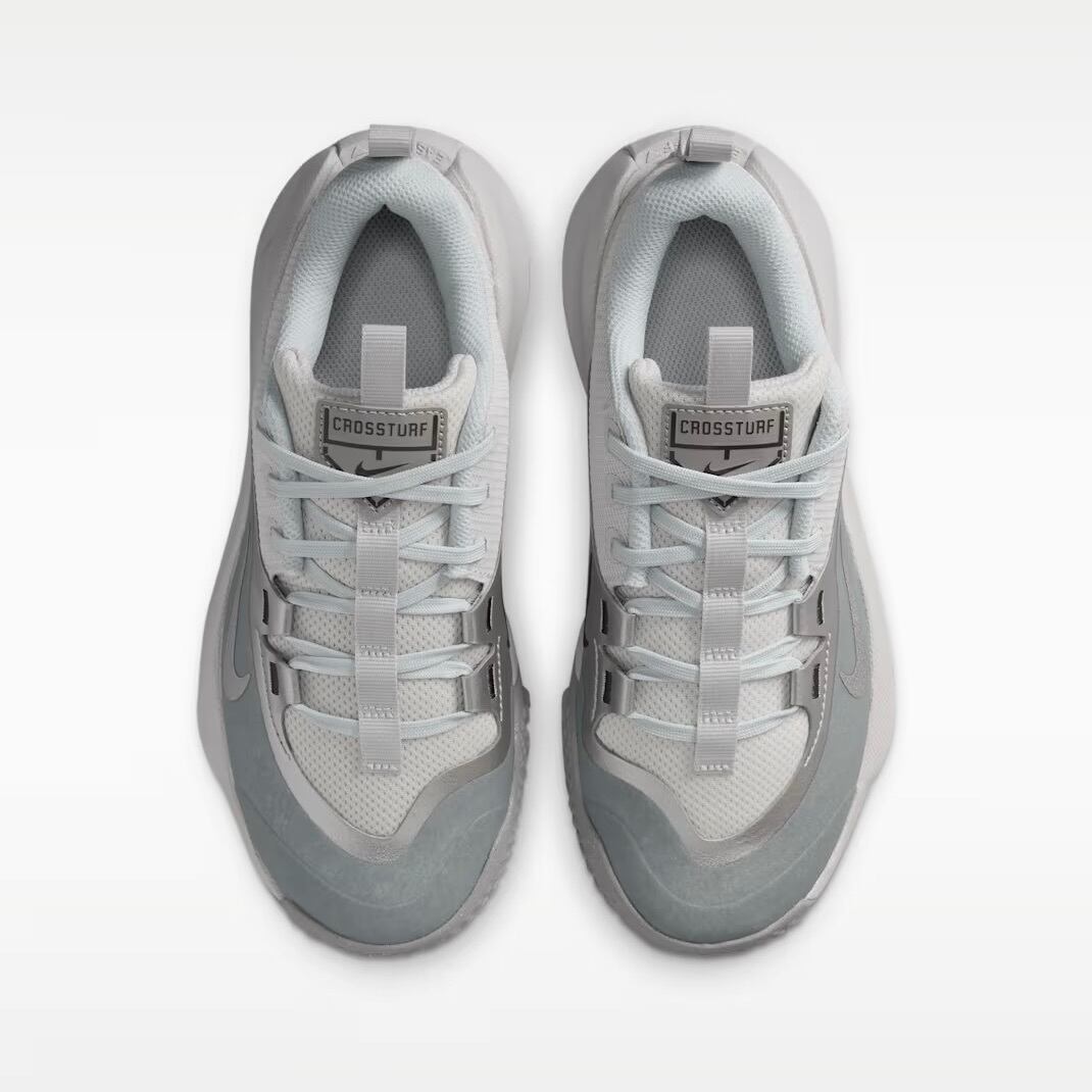 あらゆるフィールドを、洗練されたスタイルで支配する。新作「ナイキ クロスターフ」は、野球やアメフトの練習、トレーニングに最適なマルチターフシューズです。メタリックシルバーのアクセントが光るこのモデルは、爆発的な多方向への動きをサポートし、シーズン中からオフシーズンのトレーニングまで幅広く活躍します。