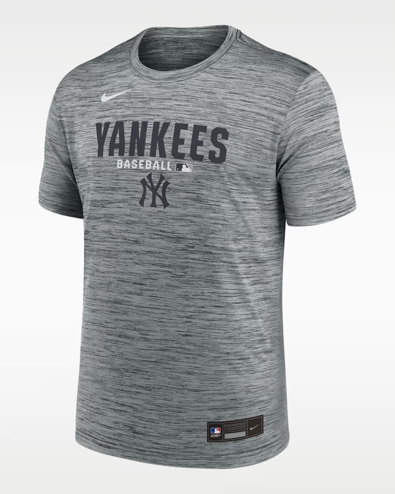 ニューヨーク・ヤンキースの公式「オーセンティック・コレクション」より、素材感にこだわったチャコールヘザー・カラーが登場。 異なる色の糸を織り交ぜた「クロスダイ(交織)」パターンを採用し、単色にはない奥行きのある表情豊かな質感を実現しました。ナイキ独自のDri-FITテクノロジーが汗を素早く吸収・拡散。名門ヤンキースの誇りを胸に、常にドライで快適なコンディションを保ちます。
