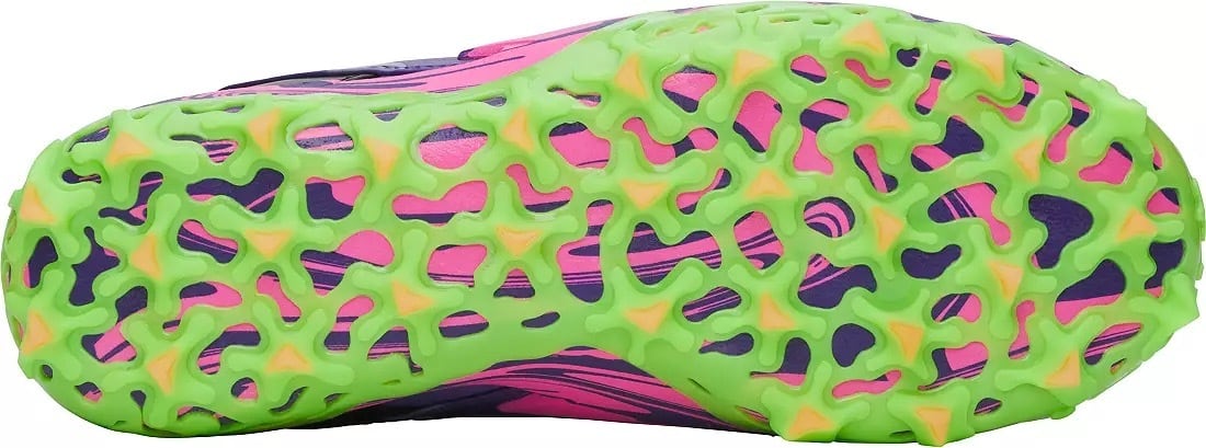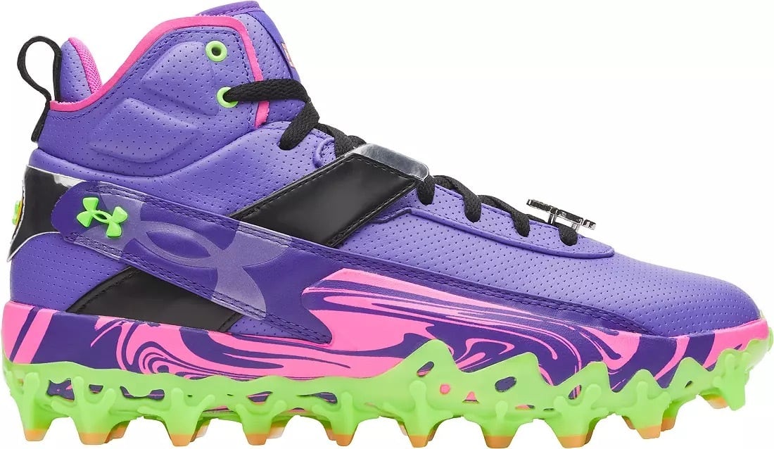 メジャーリーグのスター、ブライス・ハーパー選手のシグネチャーモデル第10弾に、限定カラー「Mad House」が登場。 パープルとグリーンのエネルギッシュな配色に、メタリック仕上げのサイドウィングが輝く、機能とデザインを究めた一足です。あらゆるサーフェスに対応するTPU(ポイント)ソールを採用し、快適性と爆発的なトラクションを両立させています。