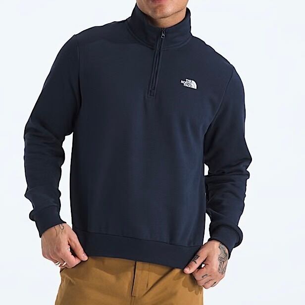 「リラックスタイムも、アクティブな休日も。これ一着で。」 肌触りの良いコットンブレンド素材を使用した、ノースフェイスの新作クォータージップ・スウェット。 シンプルなドームロゴが左胸に刺繍された洗練されたデザインで、日常のレイヤリングに欠かせないマストアイテムです。環境に配慮した農法で育てられたコットンとリサイクルポリエステルを組み合わせ、地球にも肌にも優しい仕上がりになっています。