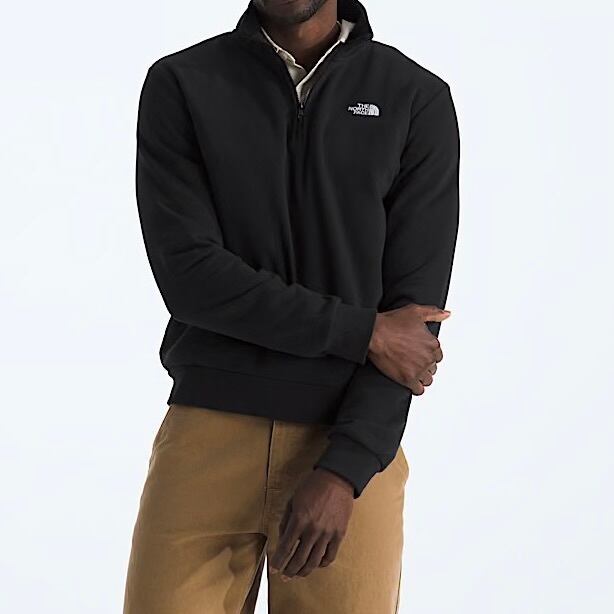 「究極のシンプル、究極の着回し力。」 ノースフェイスのアイコンであるドームロゴを左胸に刺繍した、クォータージップ・スウェット。 深みのある「TNFブラック」に白いロゴが映えるミニマルなデザインは、スポーツの行き帰りからデイリーユースまで、場所を選ばず活躍します。環境に配慮した高品質なコットンブレンド素材を使用しており、驚くほど柔らかく快適な着心地です。