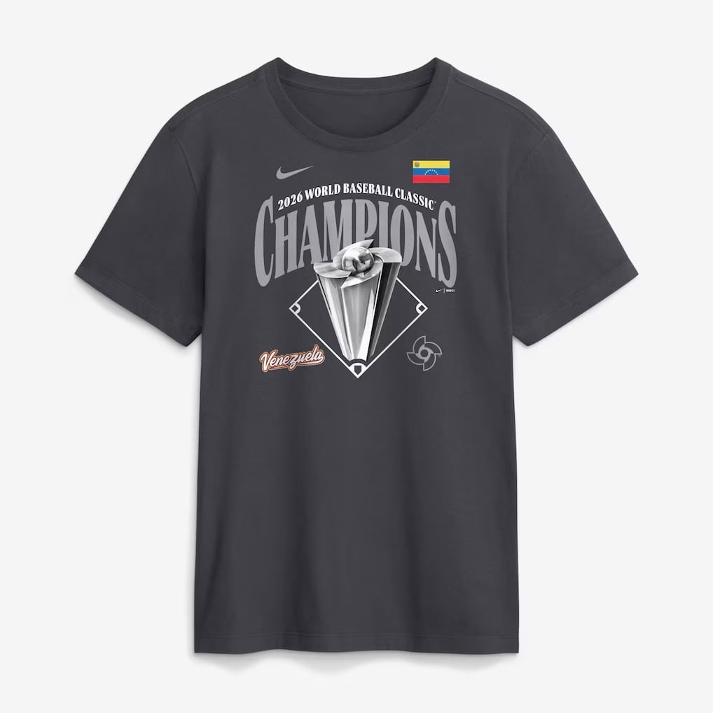 2026年ワールド・ベースボール・クラシック(WBC)で見事世界の頂点に立ったベネズエラ代表。その優勝決定直後、歓喜に沸くロッカールームで選手たちが実際に着用したデザインそのままのメモリアルTシャツがNikeから登場しました。
