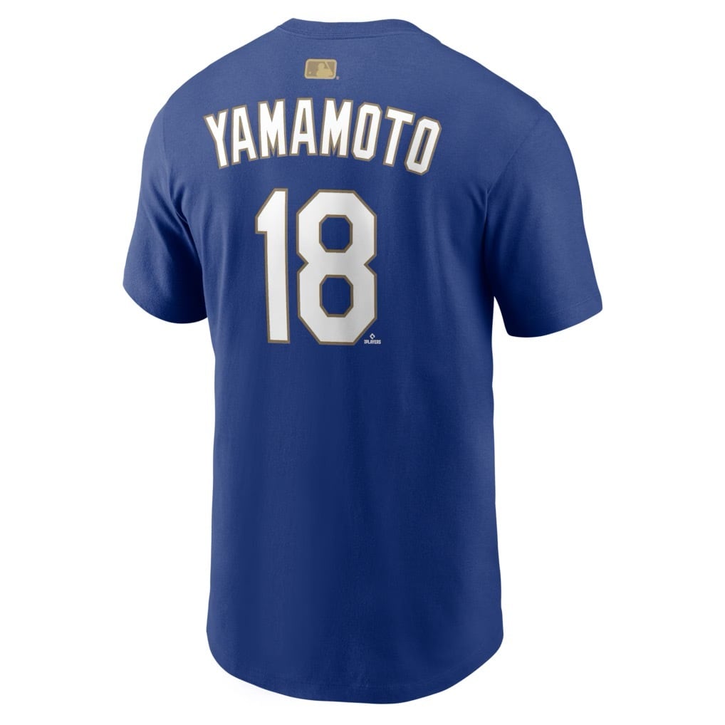Men's Los Angeles Dodgers Yoshinobu Yamamoto Nike Royal 2026 Gold Collection Name & Number T-Shirt