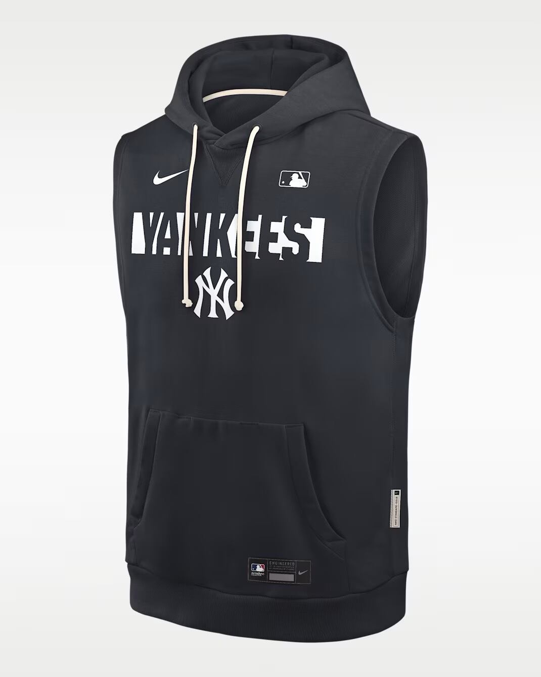 ニューヨーク・ヤンキースの選手が実際に着用するものと同じデザインを採用した、Nike(ナイキ)製「オーセンティック・コレクション」のノースリーブプルオーバーフーディーです。