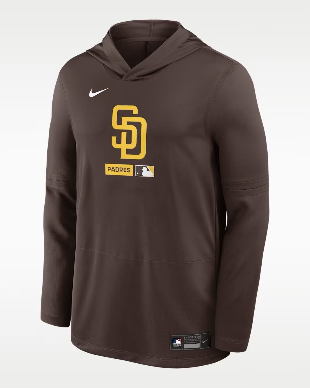 サンディエゴ・パドレスの選手が着用するものと同じデザインを採用した、Nike(ナイキ)製「オーセンティック・コレクション」の軽量ロングスリーブフーディートップです。