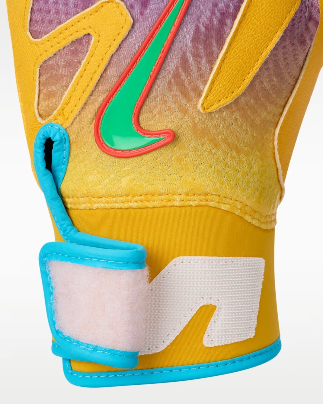 プレミアムテクスチャードレザー:パーム部分には最高級の山羊革を採用。特殊な質感加工を施すことで、バットとの一体感を高める卓越したグリップ力と、長時間の使用に耐える高い耐久性を実現しました。