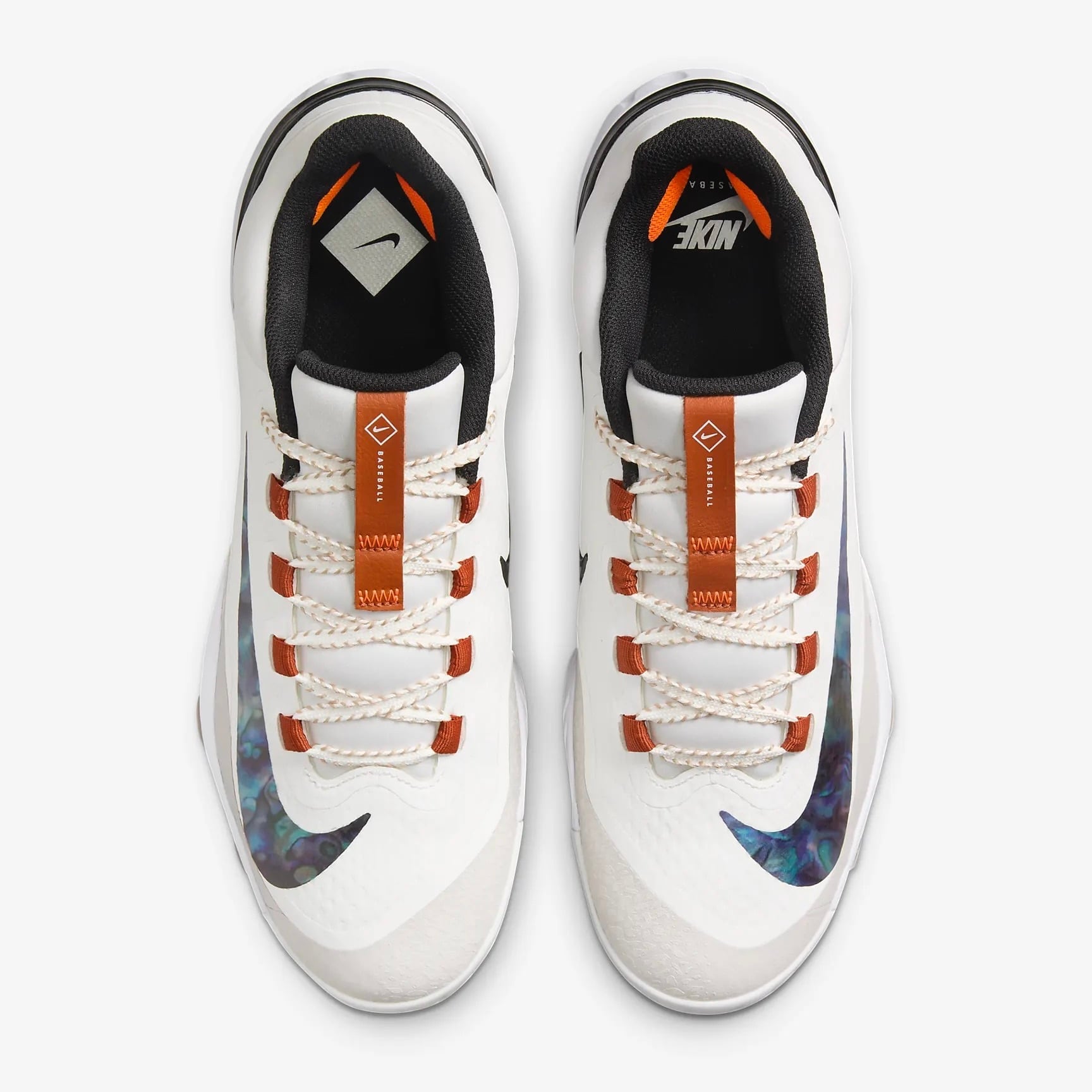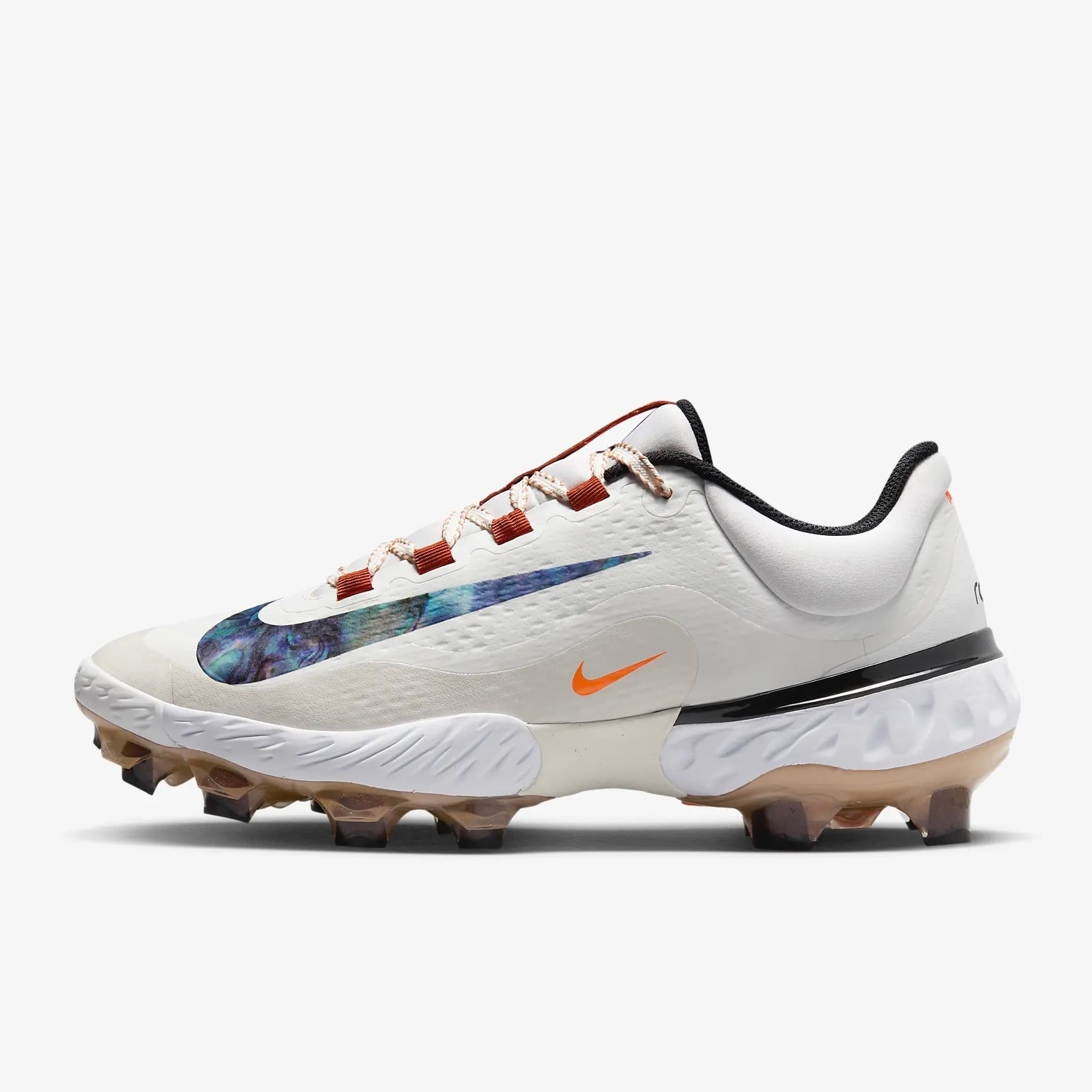 アッパーのメッシュ ウィンドウは、バスケットボール界の象徴的な Nike Huarache を彷彿とさせ、野球の先行モデルと比較して軽量化に貢献しています。