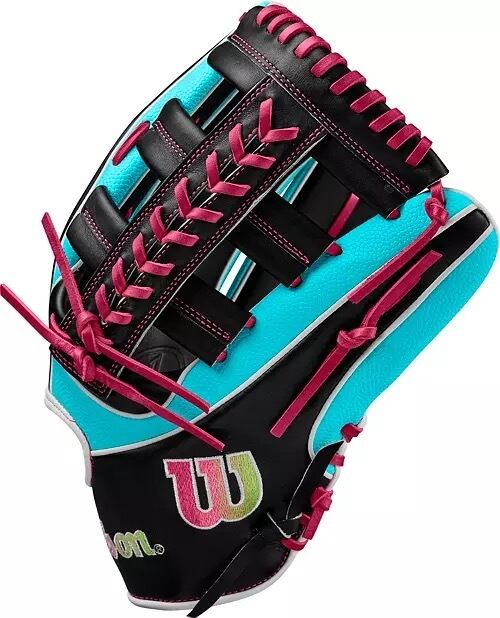 ボールをブラックのPro Stock Selectレザーの手のひらに導くシングルポストウェブを備えた12.75インチの外野手用グローブです。このグローブは、しっかりとフィットするように改良されたリストストラップと、複数の指を収容できるように幅広の小指ストールを備えています。グローブの背面にあるティール色のSuperSkinは、雨や濡れた芝生からの水分を防ぎながら重量を軽減します。日本の熟練したグローブ職人が、完璧なPro Stock Selectレザーと、通常の使用でも形状を維持するダブルパーム構造(手のひらシェルとライナーの間にレザーを追加)を使用してA2K 1810SSを作り上げています。